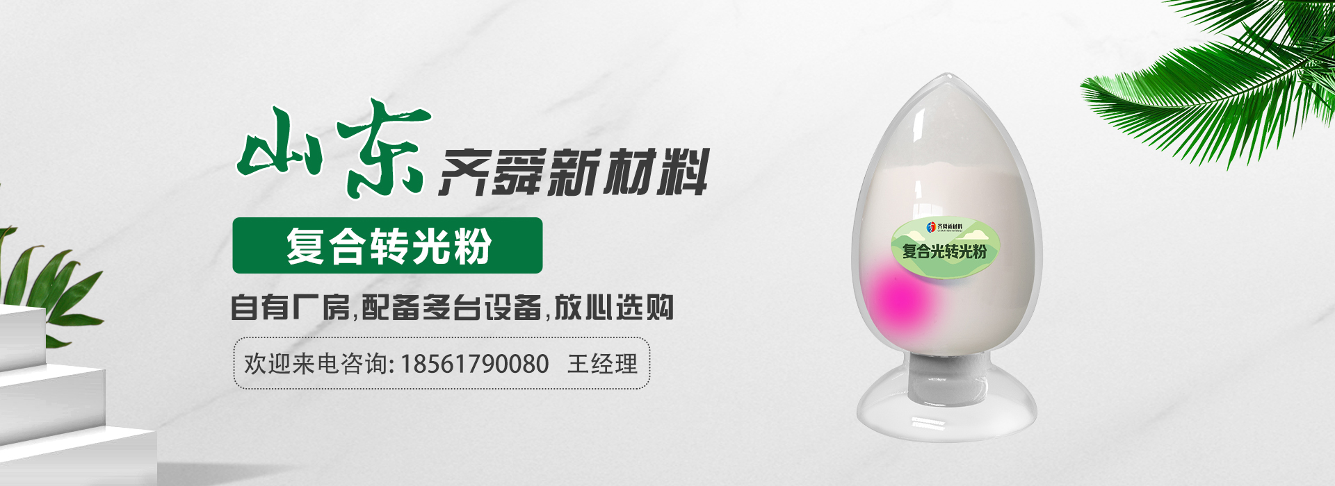 我公司前身為2011年成立的淄博舜明熒光科技有限公司。隨著公司的發(fā)展,廠址從淄博搬遷到青島,2020年5月公司重新注冊為山東齊舜新材料有限公司。公司注冊資本2000萬元,主要從事新材料研究和開發(fā)。目前主要產品包括:農膜用轉光粉、轉光母粒以及轉光農膜;農膜用長效防霧流滴涂覆液;復合肥添加劑及葉面肥(稀土微肥);防偽粉;LED封裝熒光粉;夜光粉;太陽能光伏電池增效熒光粉;鋰電池正極材料等。